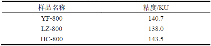 從表中可以看出,HC-800 的粘度最大,LZ-800 的粘度最小。這與三種碳酸鈣的吸油值有著一定的關系,吸油值就越大,相應地也增加了對乳液的吸附,提高了整體粘稠度,這與吸油值的測試結果是一致的。