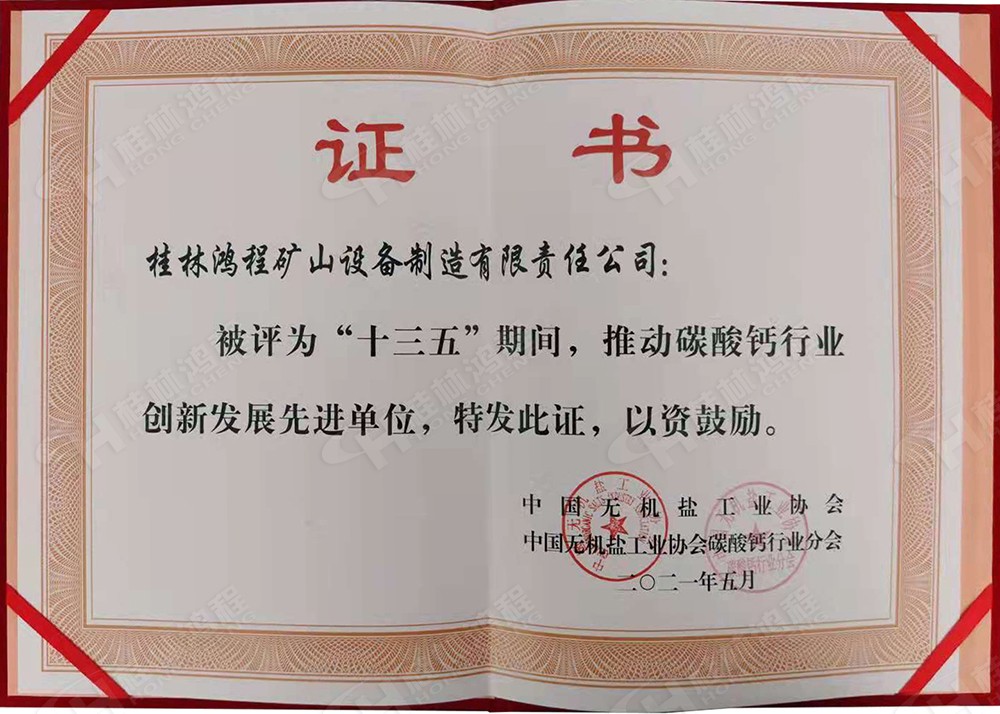 桂林鴻程榮獲“十三五”期間推動碳酸鈣行業創新發展先進單位