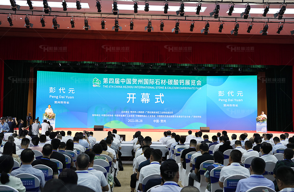 2023年6月28日至30日,第四屆中國賀州國際石材.碳酸鈣展覽會在賀州市廣西東融石材碳酸鈣交易中心隆重舉辦!展會重點聚焦碳酸鈣領域,桂林鴻程攜應用于碳酸鈣行業的超細立式磨粉機系列產品亮相,助力碳酸鈣產業高端化、智能化、綠色化、融合化發展。